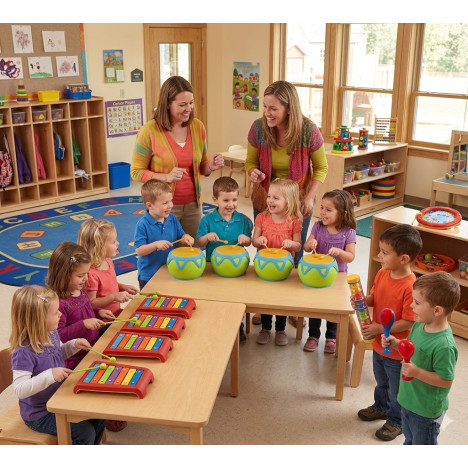 Que ce soit pour accompagner les chants en groupe ou pour développer la coordination rythmique lors des activités sportives, ces jeux sonores de la boîte à musique pour la maternelle sont une source d'inspiration.