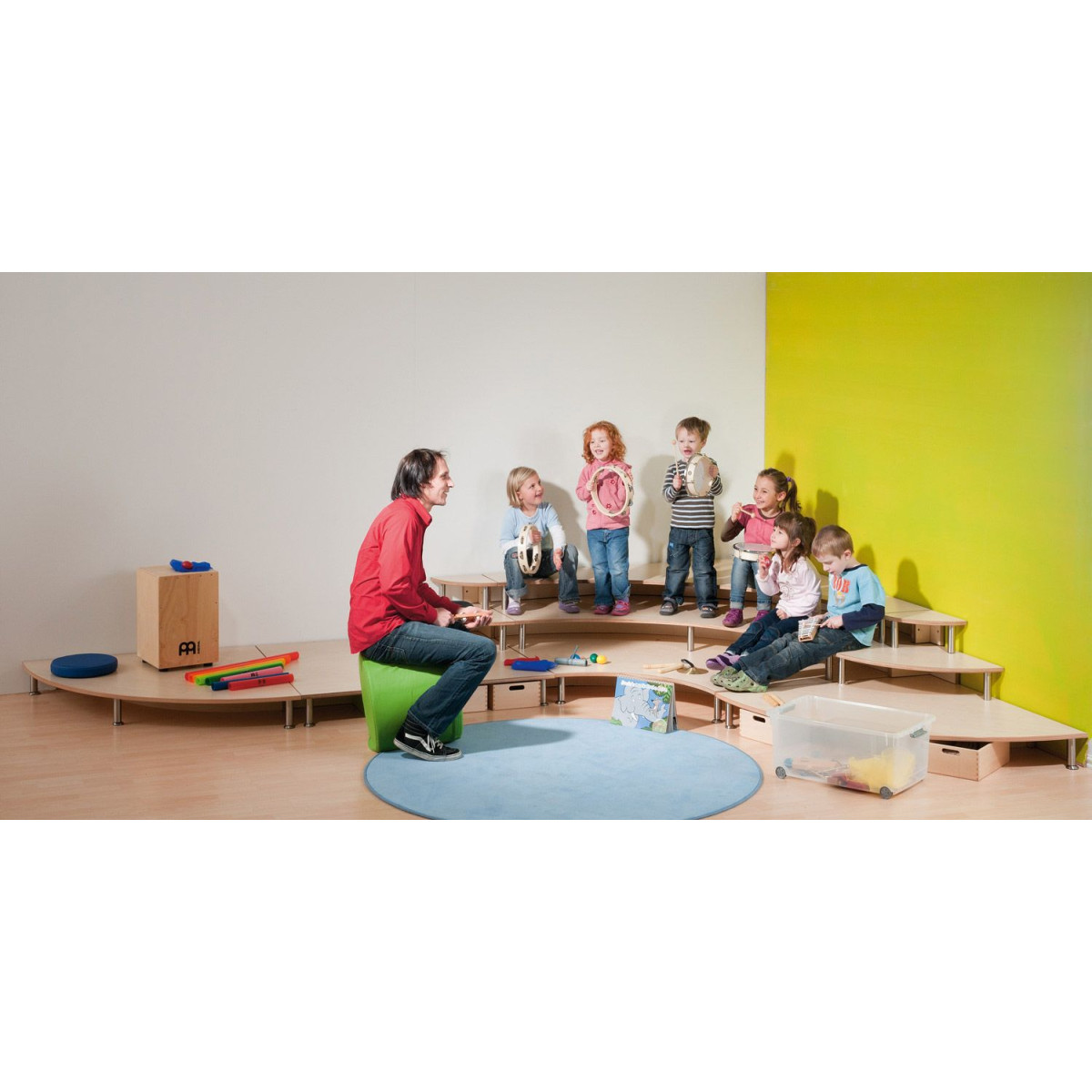 Outre une sélection d'instruments, la boîte à musique propose un concept complet pour l'éveil musical. Grâce à des idées de jeux, des histoires sonores, des chansons et des activités de mouvement, les enfants peuvent découvrir la musique de manière ludique et agréable. Des expériences intéressantes sont disponibles pour tous les instruments.
