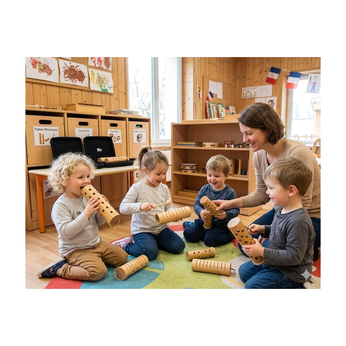 Ensemble de tubes shaker en bois : écoutez le son pur du bois ! Les tubes Shaker sont conçus avec des trous de résonance pour une projection sonore optimale.