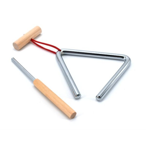 - Triangle : Son son clair et brillant enchante les enfants ! Grâce à sa poignée en bois, il est facile à tenir et à jouer en toute sécurité.