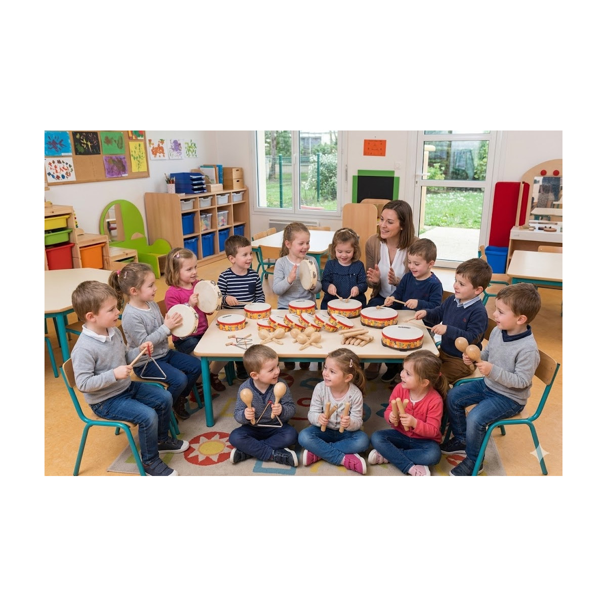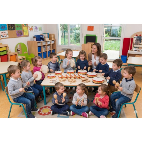 Avec le kit rythmique maternelle, jusqu’à 28 enfants dès 3 ans peuvent explorer le monde de la musique en s’amusant ! Spécialement conçu pour les enfants de maternelle, ce kit favorise l’éveil musical des enfants de multiples façons : lors du regroupement du matin, des jeux de mouvement, des moments de jeu libre ou de petits spectacles musicaux.