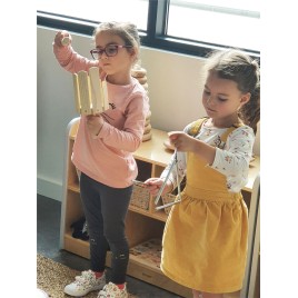 Chaque tabouret est doté d’une surface sonore qui réagit aux frappes des mains ou des baguettes. En tapotant, les enfants découvrent différentes sonorités, ce qui encourage leur créativité musicale et renforce leur coordination motrice. Cet outil pédagogique est parfait pour les activités de groupe et les initiations musicales en classe.