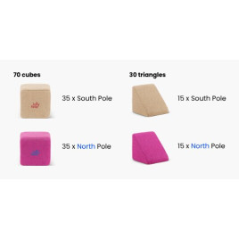 - Magnétiques : Les blocs sont équipés d'aimants en néodyme. Ils tournent à l'intérieur de capsules spéciales, de sorte que les blocs s'attirent toujours les uns vers les autres.