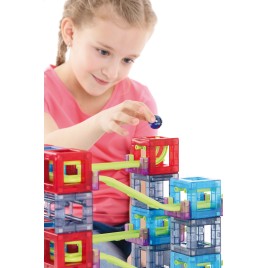Les pièces en Y sont branchées ensemble avec des bouchons plastique transparent : possibilités illimitées, faciles à construire et variées! Les balles incluses, les petites voitures, les châtaignes et bien plus encore fonctionnent également.