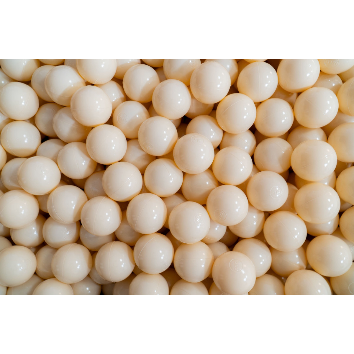 Lot de 500 balles pour piscine à balles beige Ø 7 cm fabriquées avec des matériaux de haute qualité et non toxiques, garantissant un temps de jeu sûr pour votre tout-petit. Hypoallergénique et inodore.