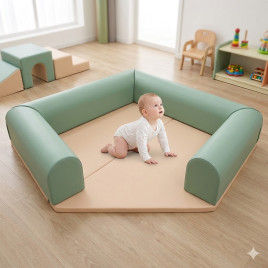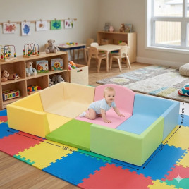 Siège bas avec dossier pour parc de regroupement bébé, en tissu lavable et intérieur en mousse. Siège bas avec dossier pour parc est muni de velcro haute résistance pour sécuriser l'assemblage. Dimensions : 60 x 60 x 37 cm • Muni d'un dessous anti-antidérapant • Mobilier fabriqué en mousse...