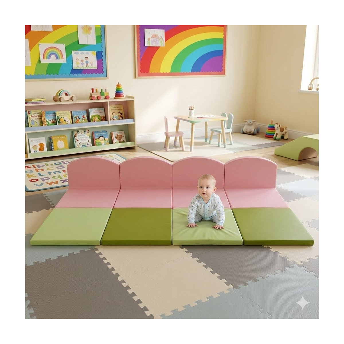Mobilier en mousse adapté pour des enfants de 1 à 3 ans.
