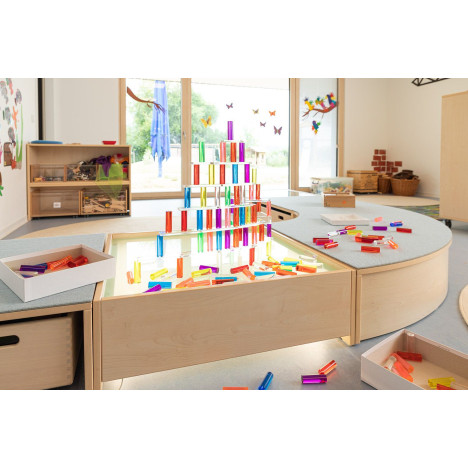 Des bâtonnets translucides en 7 couleurs vives ! Associés au panneau perforé, elles invitent les enfants à expérimenter avec la couleur et la lumière. Un exercice de motricité fine et, combiné à la lumière (du jour), une expérience unique ! Convient également pour construire sur une table lumineuse ou en combinaison avec du bois et des matériaux naturels.