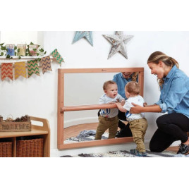 Possibilité de le fixer horizontalement ou verticalement. Véritable miroir qui garantit une image parfaite. La barre permet à l'enfant de se relever ou de se maintenir debout.