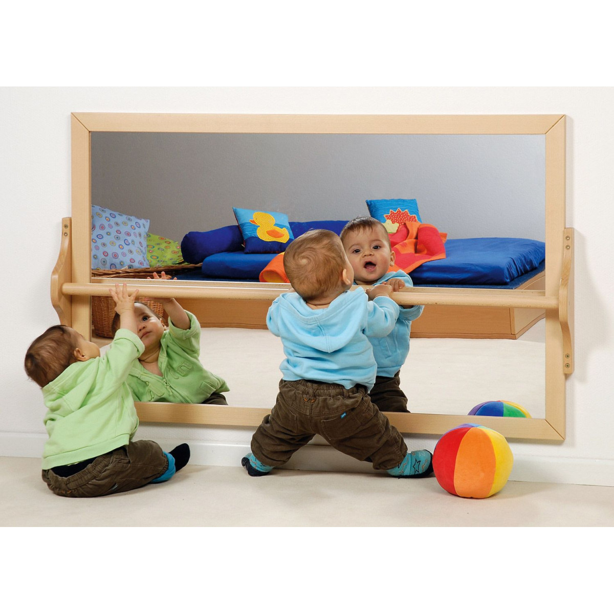Miroir horizontal avec barre de maintien, miroir horizontal, miroir avec film de sécurité de 4 mm d'épaisseur.