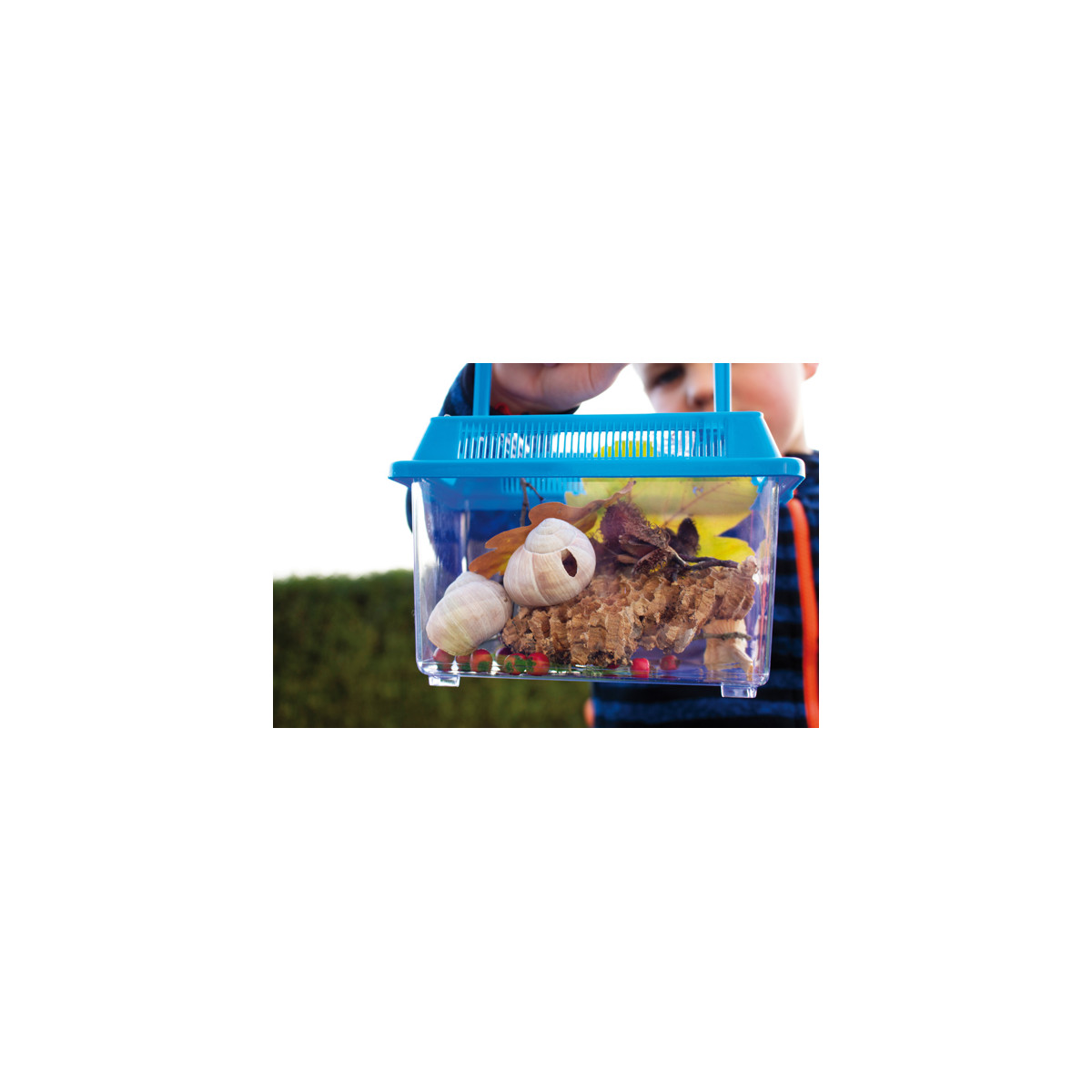 Ce kit contient : une boîte en plastique transparente de 15 litres avec couvercle, 1 boîte à insectes (lot de 2), 2 EDU-Scope, 1 seau à insectes, 1 boîte à loupe double, 3 télescopes à ressort arc-en-ciel, 5 boîtes avec grande loupe, 5 boîtes avec petite loupe, 2 télescopes de poche, 5 boussoles en bois, 8 loupes colorées.