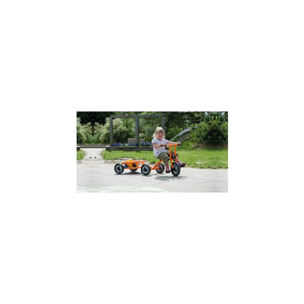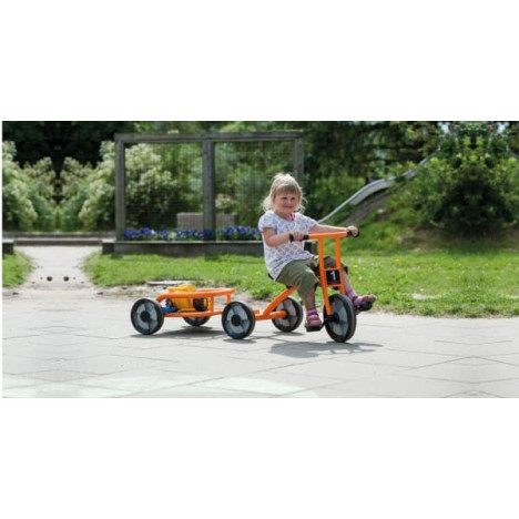 Cette remorque pour cycles de la gamme Aktiv, robuste et pratique est conçue pour de multiples usages. Grâce à sa plateforme de chargement solide, elle est idéale pour transporter du sable, des jouets ou un doudou. Son utilisation stimule le jeu de rôle. Facile et rapide à attacher.