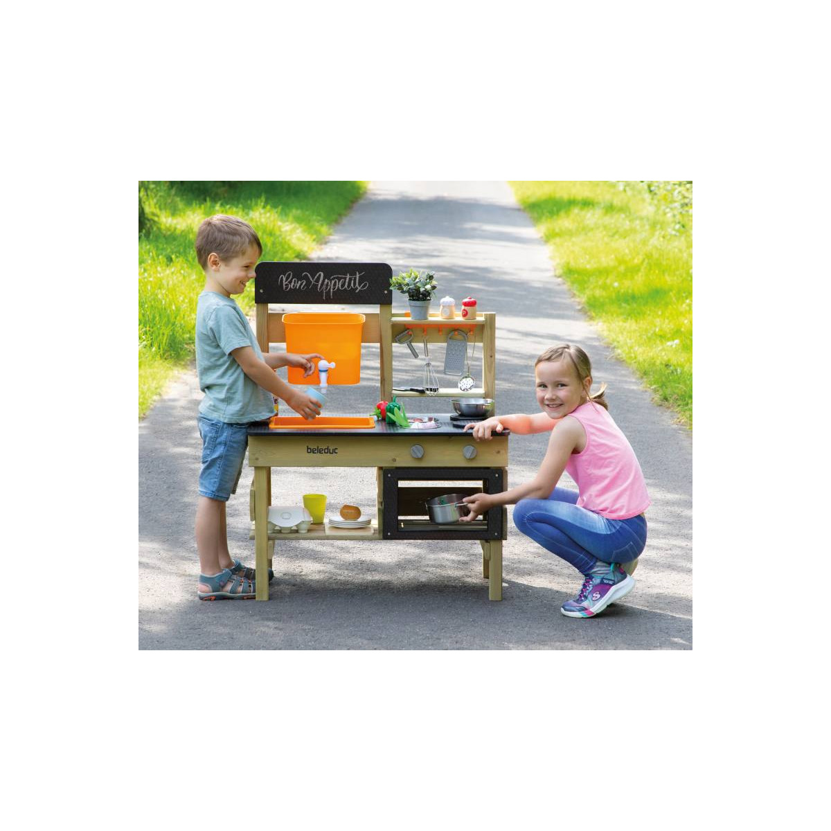 Cuisinez et mélangez ensemble à l'extérieur ! Avec cette cuisine de jeu robuste, les enfants s'amusent longtemps et dehors.