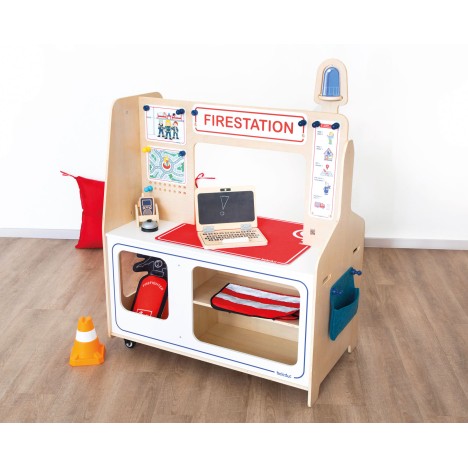 La table 2 en 1 de police et de pompiers est une activité d'imitation qui assemble 2 thèmes en 1 avec le même mobilier de jeu!