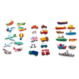 Pack voyage à associer avec le tapis mural terre, mer, air. pour des jeux de motricité. Cet ensemble contient 30 pièces avec les velcros pour un meilleur maintien sur le tapis mural.