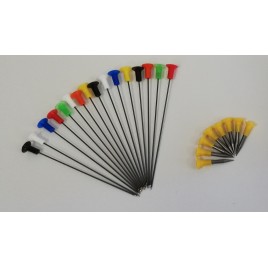 Traits pour sarbacane en acier avec embase en plastique multicolore. Les traits sont constitués d'une tige en acier de 11 cm et d'une embase en plastique (de différentes couleurs). Poids : 1 gr Quantités au choix : 12, 24, 50 ou 100 traits pour sarbacane.