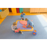 La surface de jeu mesure exactement 100 x 100 cm, et chaque case du plateau mesure 10 x 10 cm. L'enfant apprend la taille d'un mètre carré en jouant. Ce plateau est donc idéal pour l'apprentissage des unités de longueur.