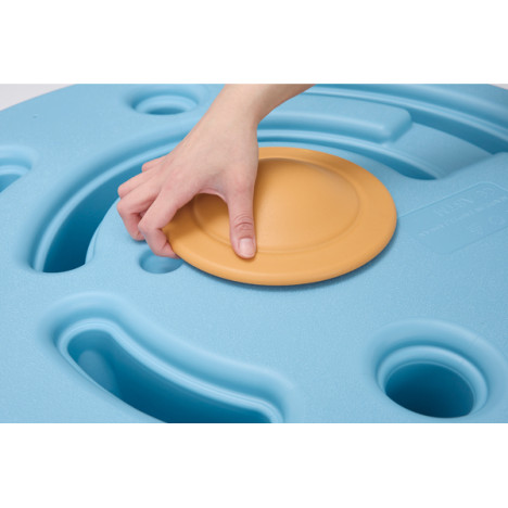 Grâce à sa grande taille, la planche d'équilibre Rocky Hill permet à deux enfants de jouer ensemble. C'est la plateforme idéale pour que les enfants s'exercent à transférer leur poids tout en développant leur esprit d'équipe. La colline peut également être utilisée sans sa base. Elle sert à la fois de plateforme stable, de chemin circulaire et de colline rocheuse à escalader pour les tout-petits.