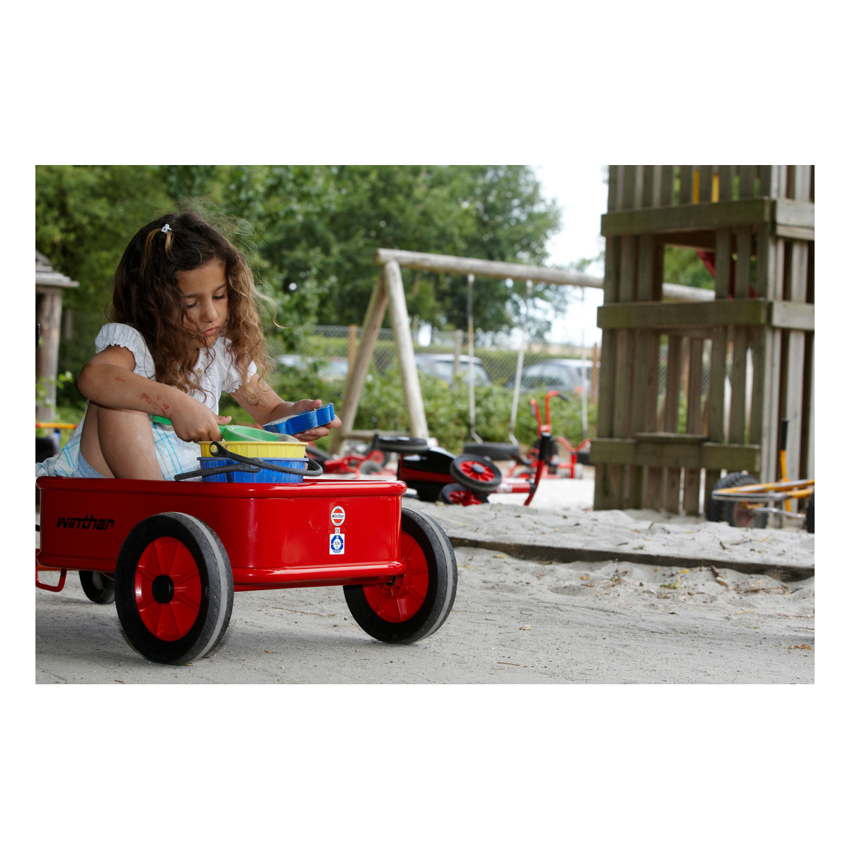 Fond antidérapant, fixation simple et rapide. Offre de nombreuses possibilités de jeu : transport de sable, de jouets, de passagers et bien plus encore.