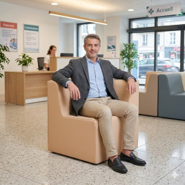 Mobilier fabriqué en mousse de polyuréthane 23 kg/m3 et recouvert de toile PVC imperméable et lavable