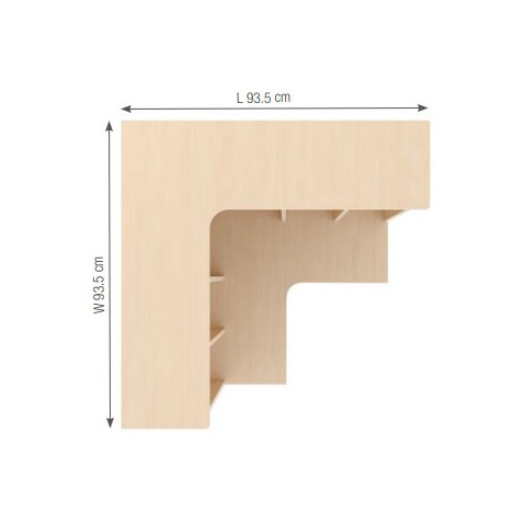 Sa disposition en angle avec une longueur de chaque côté de 93,5 cm offre la possibilité de le placer dans des endroits spécifiques et de favoriser la fluidité des déplacements au sein de l'école maternelle.