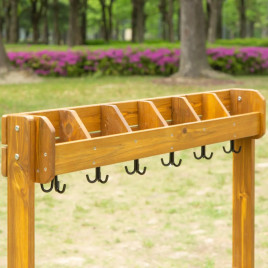 Ce chariot mobile, est muni de 20 emplacements pour gobelets (ø 64 mm) et 10 patères avec deux crochets de chaque côté où vous pourrez y accrocher des petites serviettes.