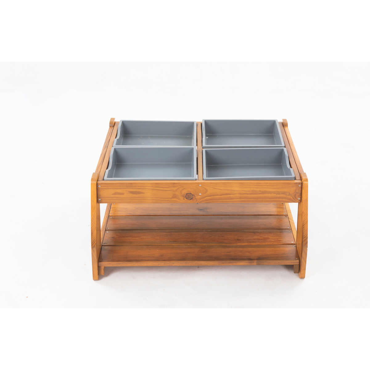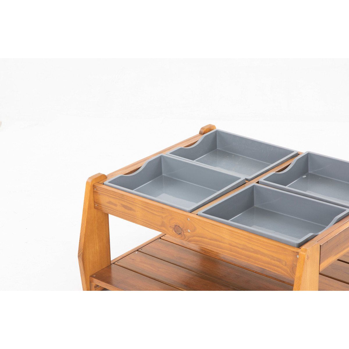 La table pour sable et eau est équipée de quatre bacs amovibles en polypropylène (PP) robustes. Ces bacs invitent les enfants à expérimenter et à jouer avec différents matériaux, qu'il s'agisse de sable, d'eau ou de mélanges amusants.