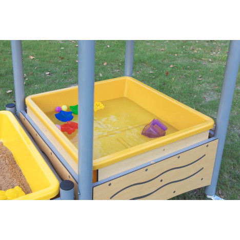 La photo n°7 de la table sable et eau mobile avec toit avec la table sable et eau mobile d'extérieur contient 2 éléments distincts. Le prix correspond à 1 élément Table sable et eau mobile avec toit.