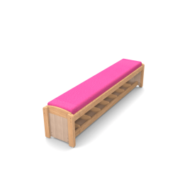 Banc d’accueil avec casiers à chaussures. Banc avec assise en mousse couleur framboise, monté sur 8 casiers pour faciliter le rangement des chaussures sous le banc. Ce meuble contient 8 casiers disponibles pour faciliter le rangement des chaussures sous le banc. Structure hêtre massif. Panneaux...