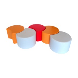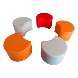 Mobilier en mousse adapté pour les enfants en maternelle, les formes permettent aux sièges de s'assembler les uns avec les autres ou avec d'autres éléments de cette même gamme.