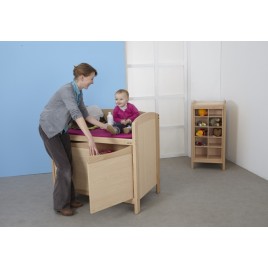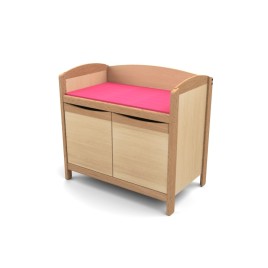 Meuble d'accueil à casiers avec tapis de change. Meuble d'accueil en hêtre massif disposant de casiers de rangement et permettant l'accueil en crèche et le change de l'enfant. 2 vocations : accueil et préparation à la journée des tout-petits + rangement Livré monté avec tapis de change en tissu...
