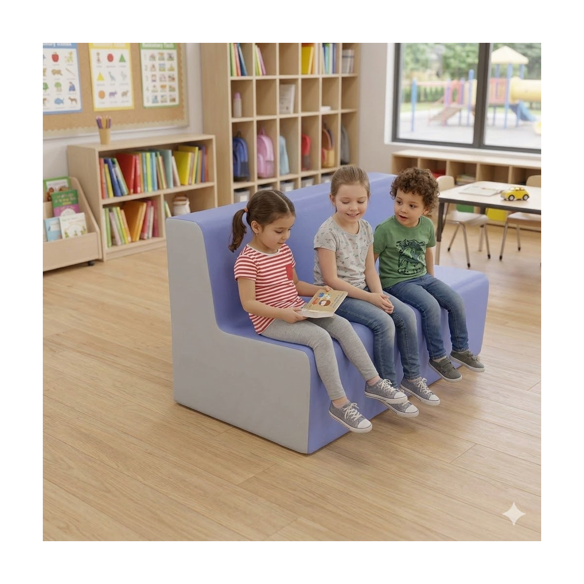 Cette gamme de mobilier en mousse est parfaitement adaptée pour les enfants en crèche ou en école maternelle.