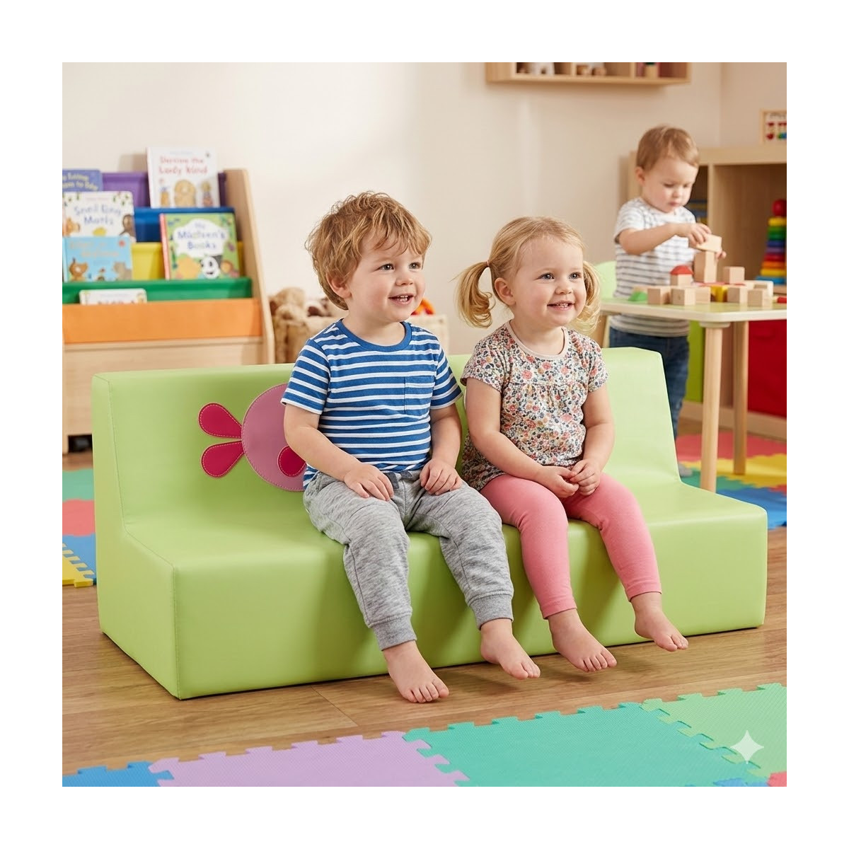 Mobilier en mousse adapté pour des enfants de 1 à 3 ans.