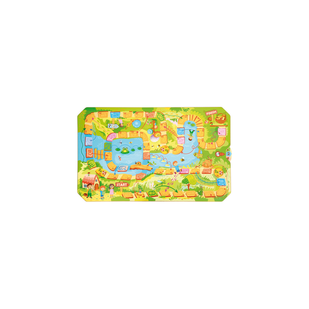 Table de jeu d'aventure au bord de la rivière : ornée d'un magnifique paysage illustré, cette table peut accueillir jusqu'à 6 enfants pour une aventure palpitante. L'aventure commence avec des paniers vides à la maison, se poursuit dans le jardin et traverse la rivière.