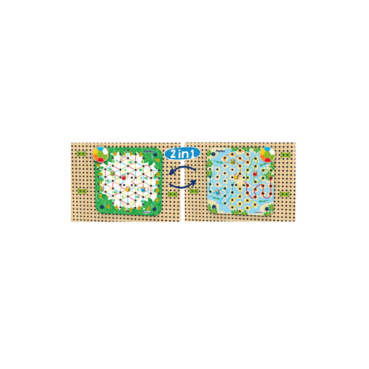 - Le jeu des singes 2 en 1 : les règles faciles de ces deux jeux amusants avec des singes permettent aux enfants de se lancer directement ! Le "jeu des singes" PLUG it est un jeu amusant qui encourage l'interaction et le mouvement. La feuille de jeu est imprimée des 2 côtés et offre deux idées de jeu avec un disque rotatif en couleur : d'un côté, les singes sont à la recherche de bananes, de l'autre, ils veulent vite sauter dans la jungle. En jouant avec les plugs, les capacités motrices, la reconnaissance des couleurs et l'attention sont également stimulées.