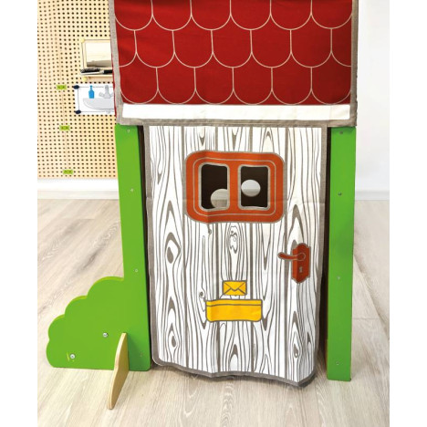 Le kit de jeux de rôle toiture textile inclus : 1 x toit en textile avec porte, 2 x rideaux avec passants, 8 x plugs de fixation