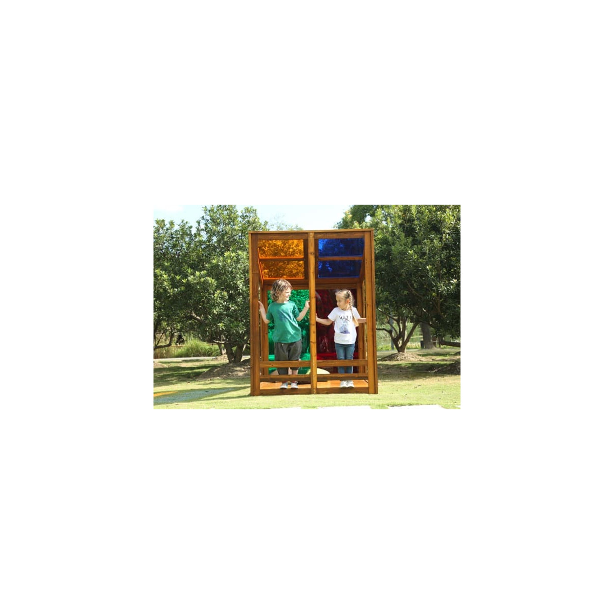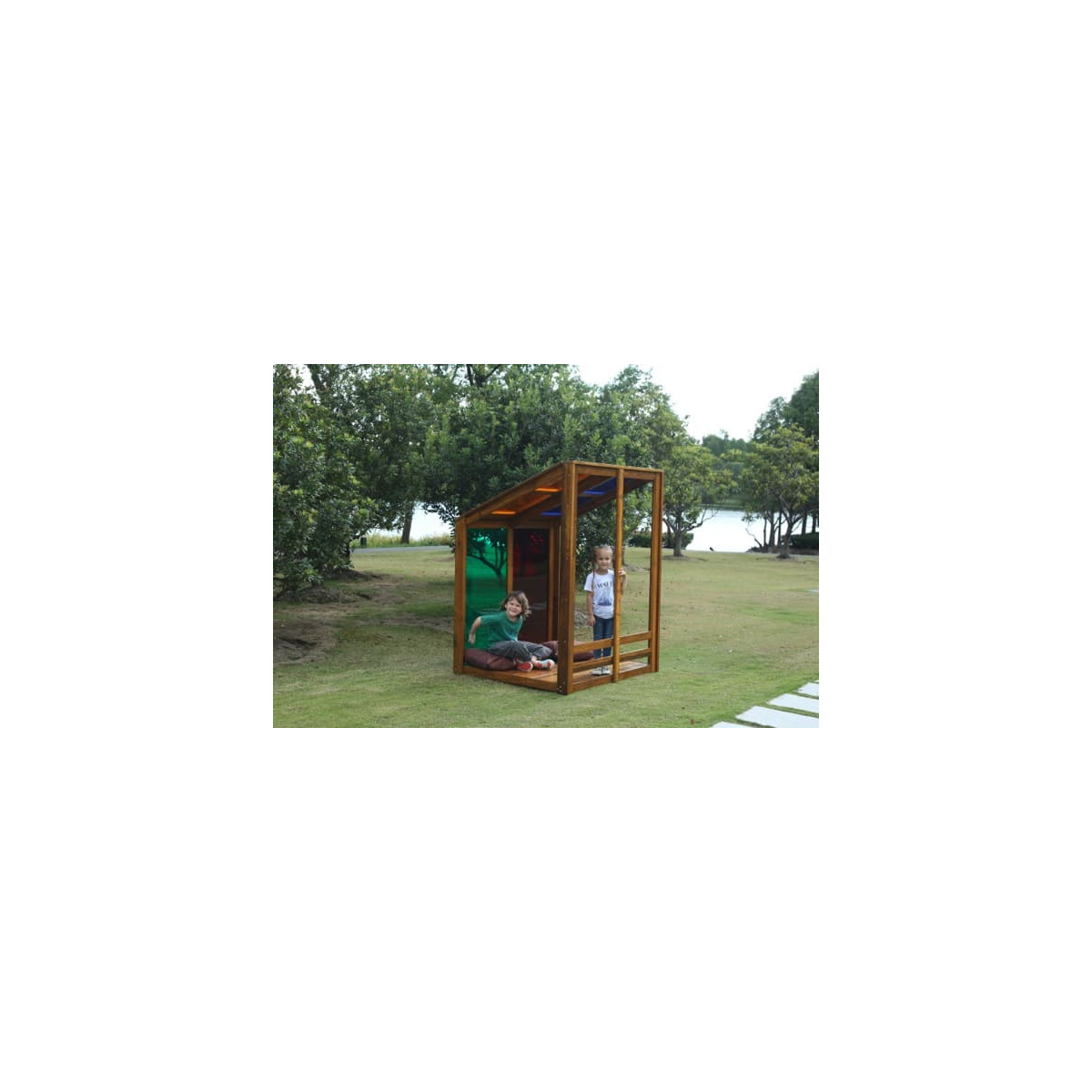 Avec cette magnifique maison arc-en-ciel, observez différents spectacles de lumière. Lorsque la lumière traverse les fenêtres colorées, jouer dans la maison arc-en-ciel devient une expérience unique.