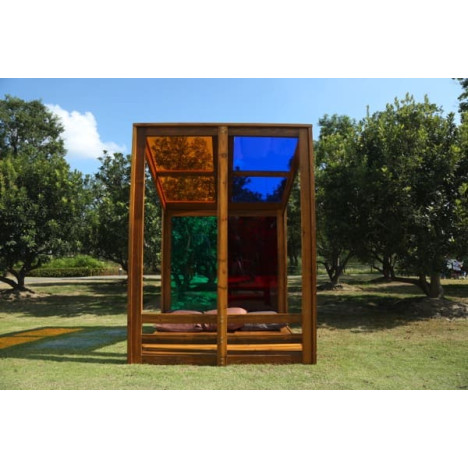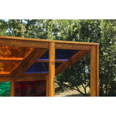 Matériaux : pin imprégné sous pression avec une finition à l'huile dure naturelle, verre acrylique