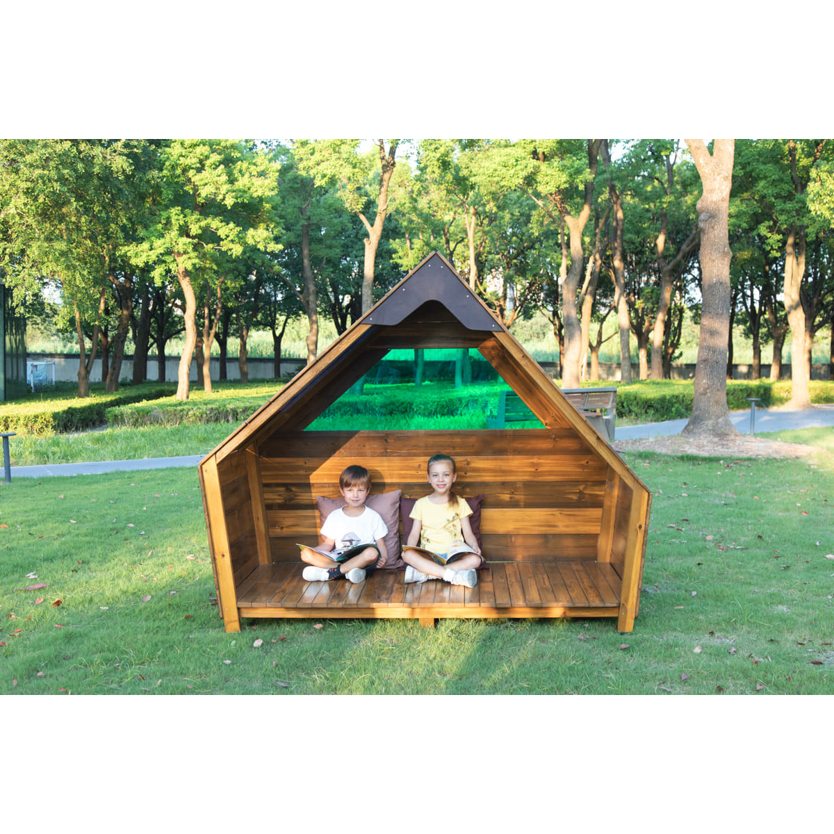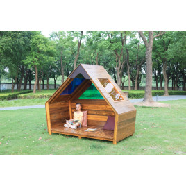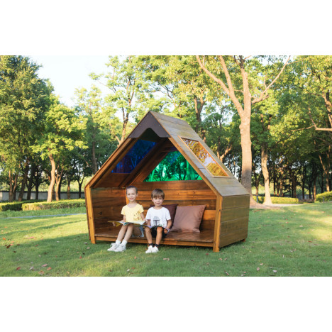 La cabane du voyageur d'extérieur est une cabane conçue pour les jeux en extérieur. Conçue pour les crèches, écoles maternelles, elle sert à la fois de refuge sécurisé et d'aire de jeux stimulante.