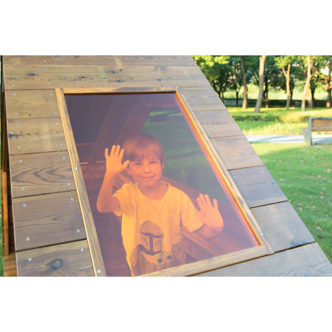 Matériaux : pin imprégné sous pression traité avec un double vernis huile/cire, vitres en polycarbonate incassable