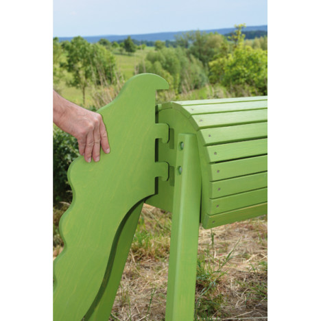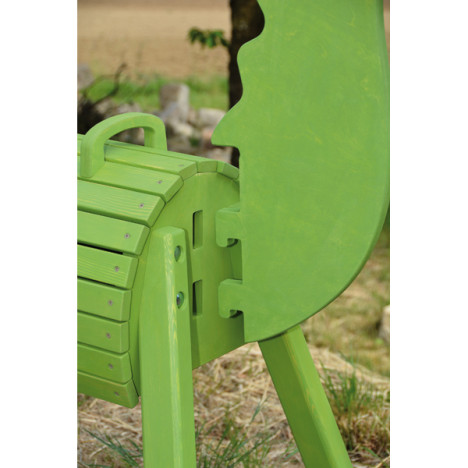 Matériaux : Pin teinté résistant aux intempéries (corps et pattes) et contreplaqué de bouleau hydrofuge (tête et queue).