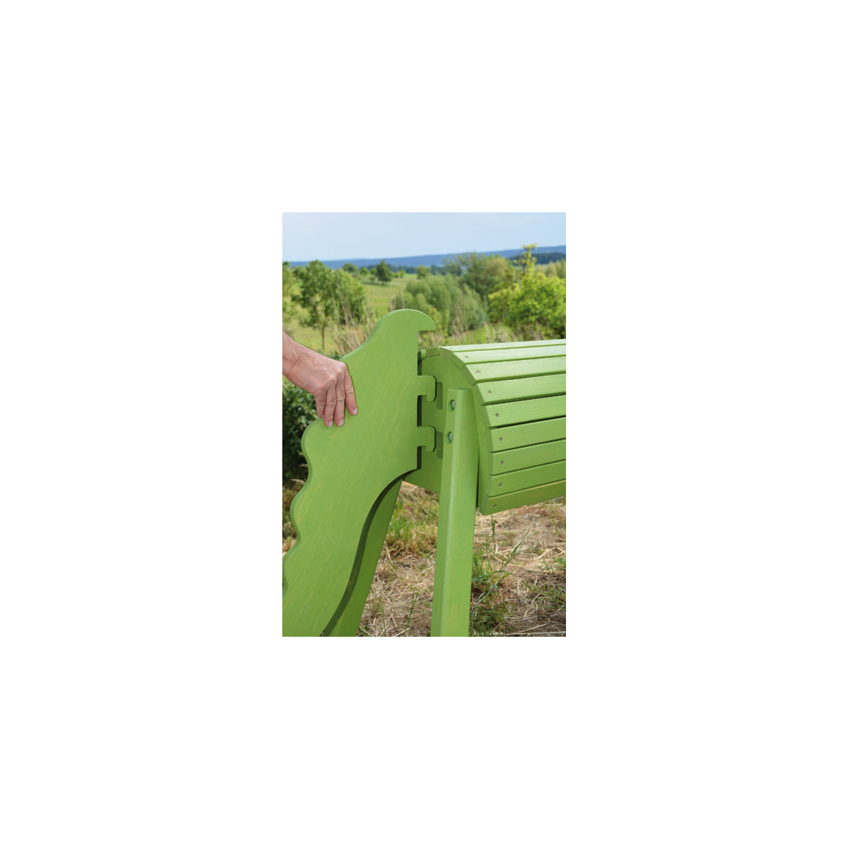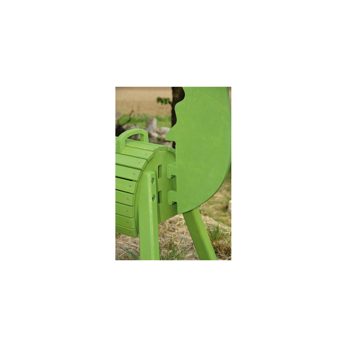 Dragon en bois 90 cm pour les activités des enfants en extérieur, résistant aux intempéries pour des aventures imaginatives. Ce dragon original, teinté vert clair, est stable, sûr et robuste.