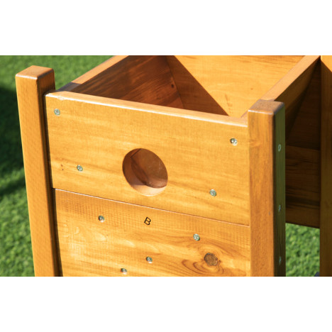 Matériaux : pin imprégné sous pression et traité avec deux couches d'huile/cire, polyéthylène, polycarbonate, PVC