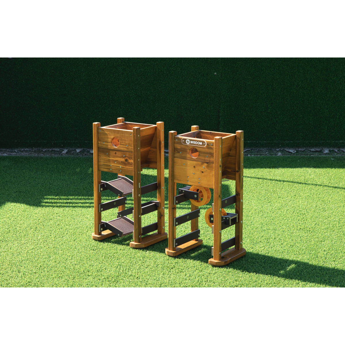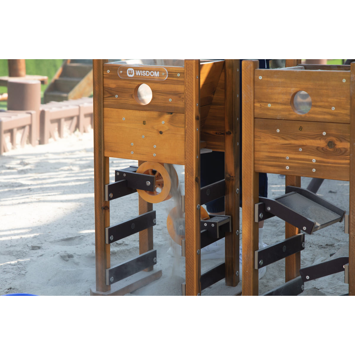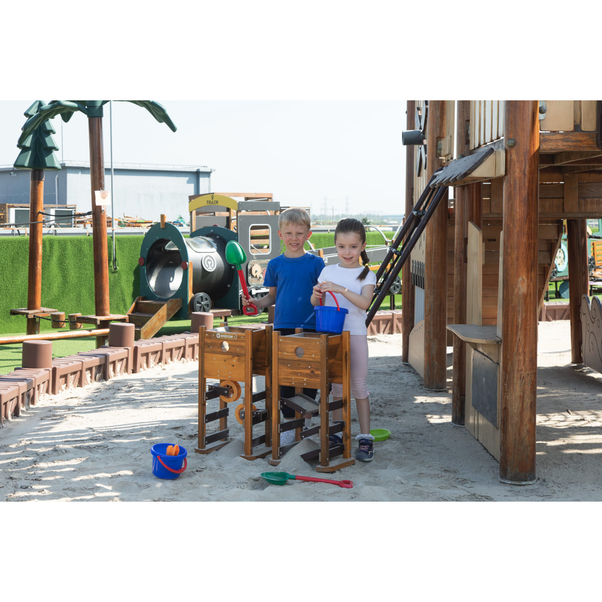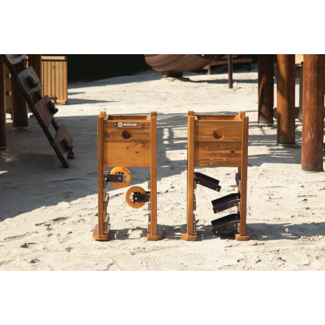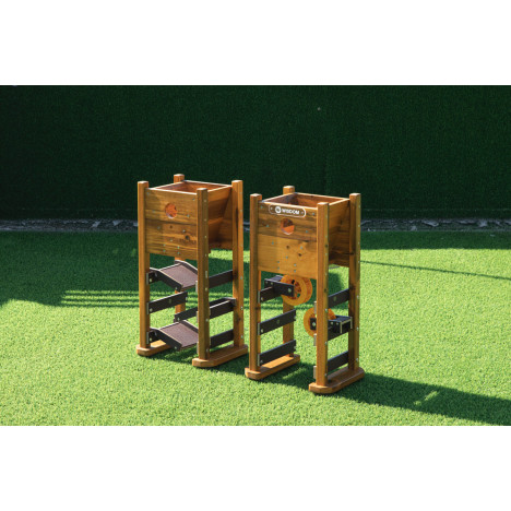 Ce jeu des 2 tours de jeux de sable d’extérieur comprend deux tours de sable avec réservoirs de sable (livrées sans sable), qui s'ouvrent pour déverser le sable sur les toboggans ou les roues à sable.