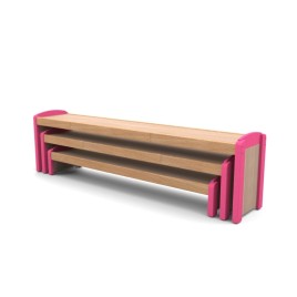Banc avec hauteur d'assise de 41 cm adapté pour les enfants en fin d'école primaire ou début de collège, fabriqué en bois et conçu pour différents usages (accueil, lecture...).