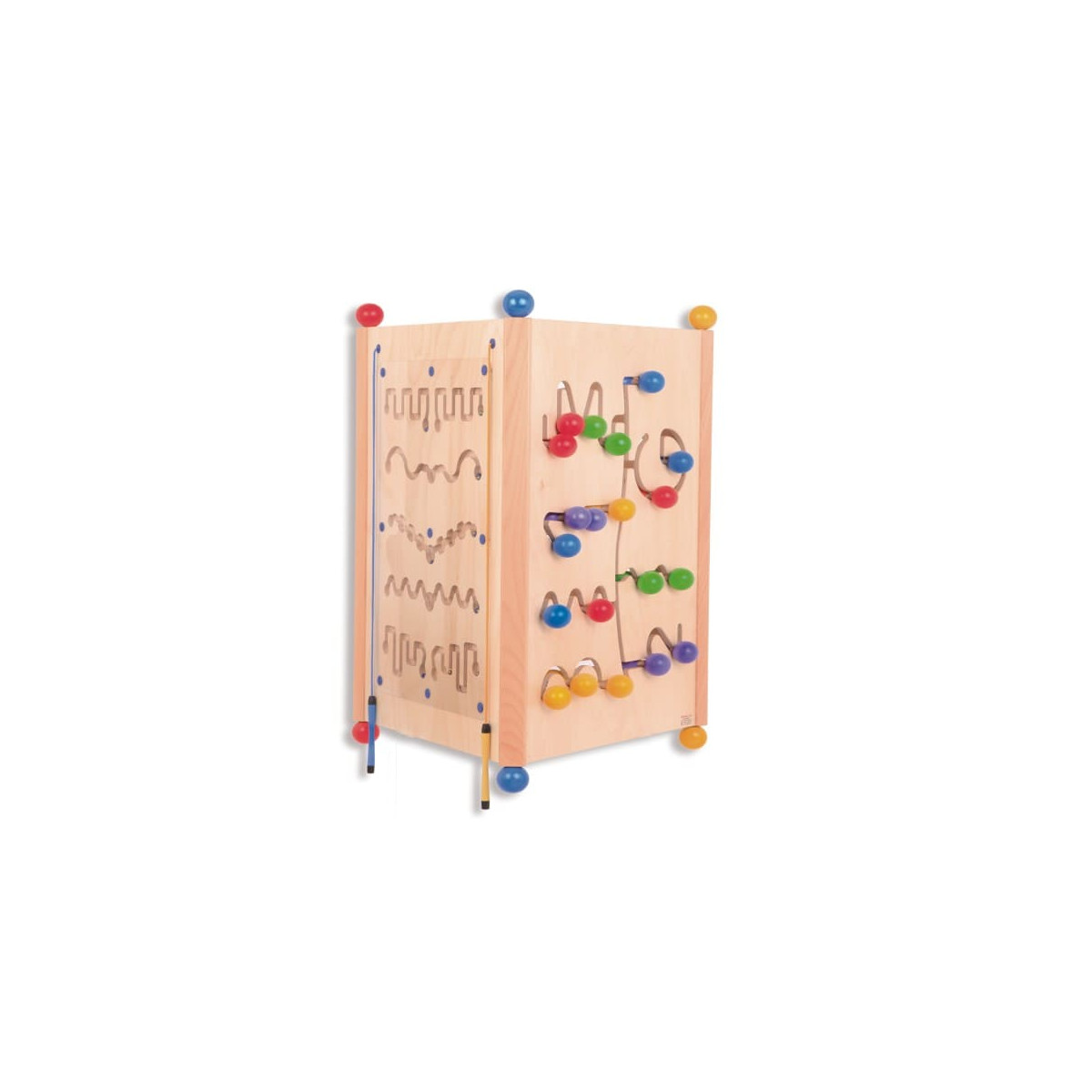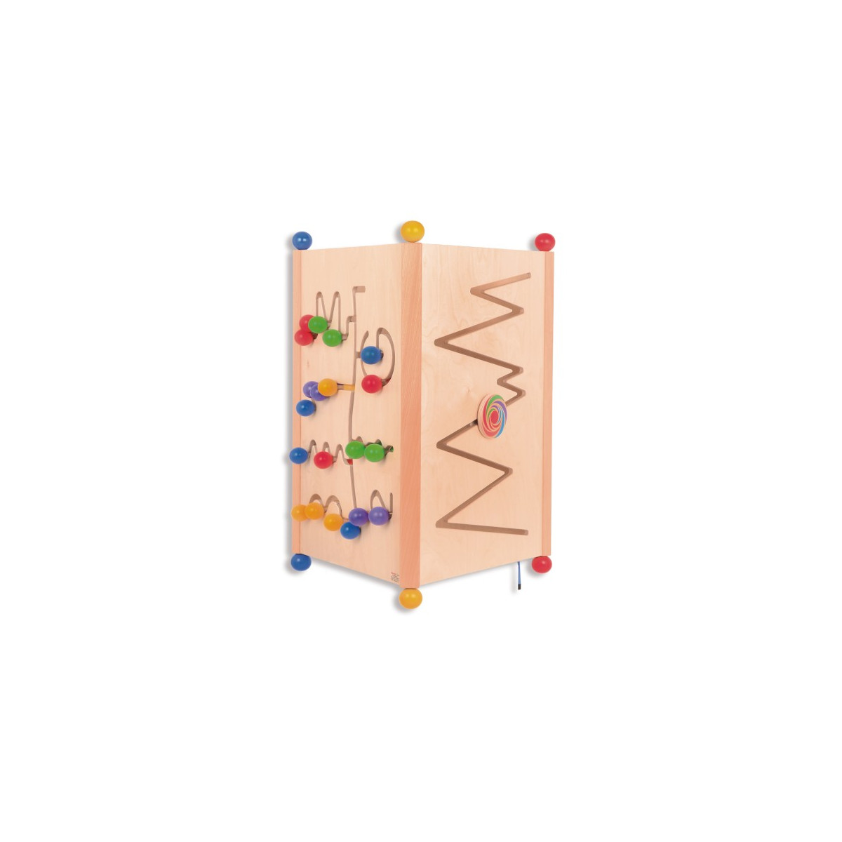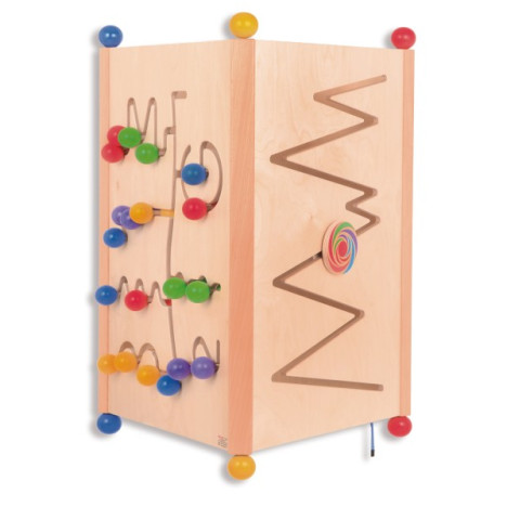 Plusieurs enfants peuvent jouer, apprendre, découvrir et expérimenter simultanément. Ses pieds, en forme de grosses boules de bois, assurent sa stabilité et facilitent les déplacements et les rotations.