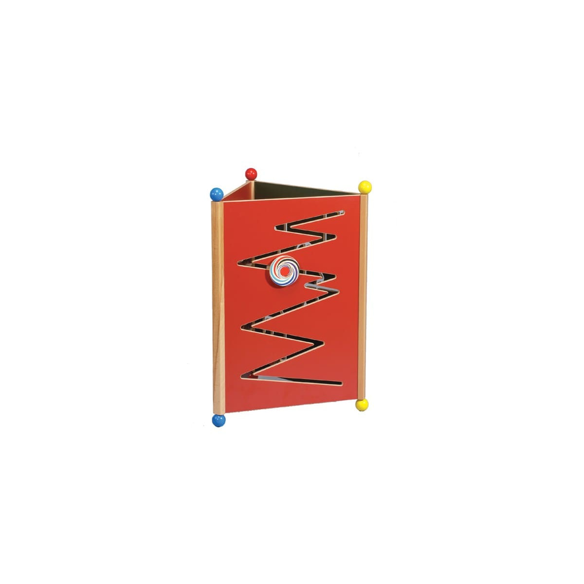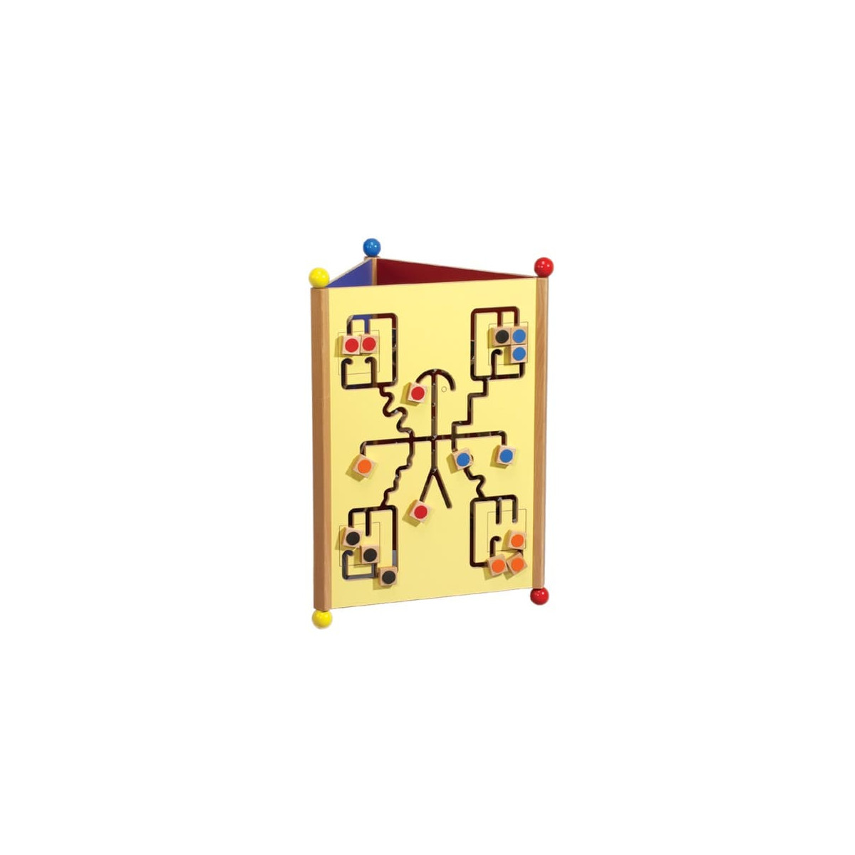 La Tour de dextérité Manhattan en couleurs est une structure de jeu fermée composée de trois plateaux de jeu différents, agencés en triangle, invitant les enfants à jouer.