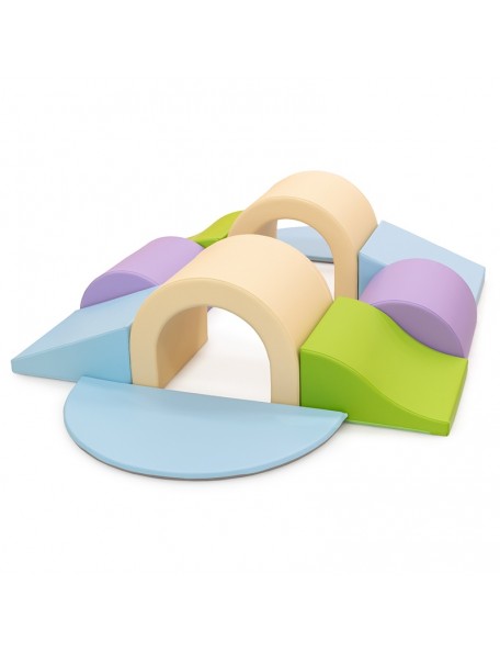Parcours de motricité crèche "le volcan" de couleurs Pastel en mousse pour réaliser des parcours de motricité adaptés aux bébés. Les éléments sont fabriqués en mousse de polyuréthane de densité 23 kg/m3. Toile PVC imperméable, fabrication sans phtalates (conforme à la norme REACH). Les modules...