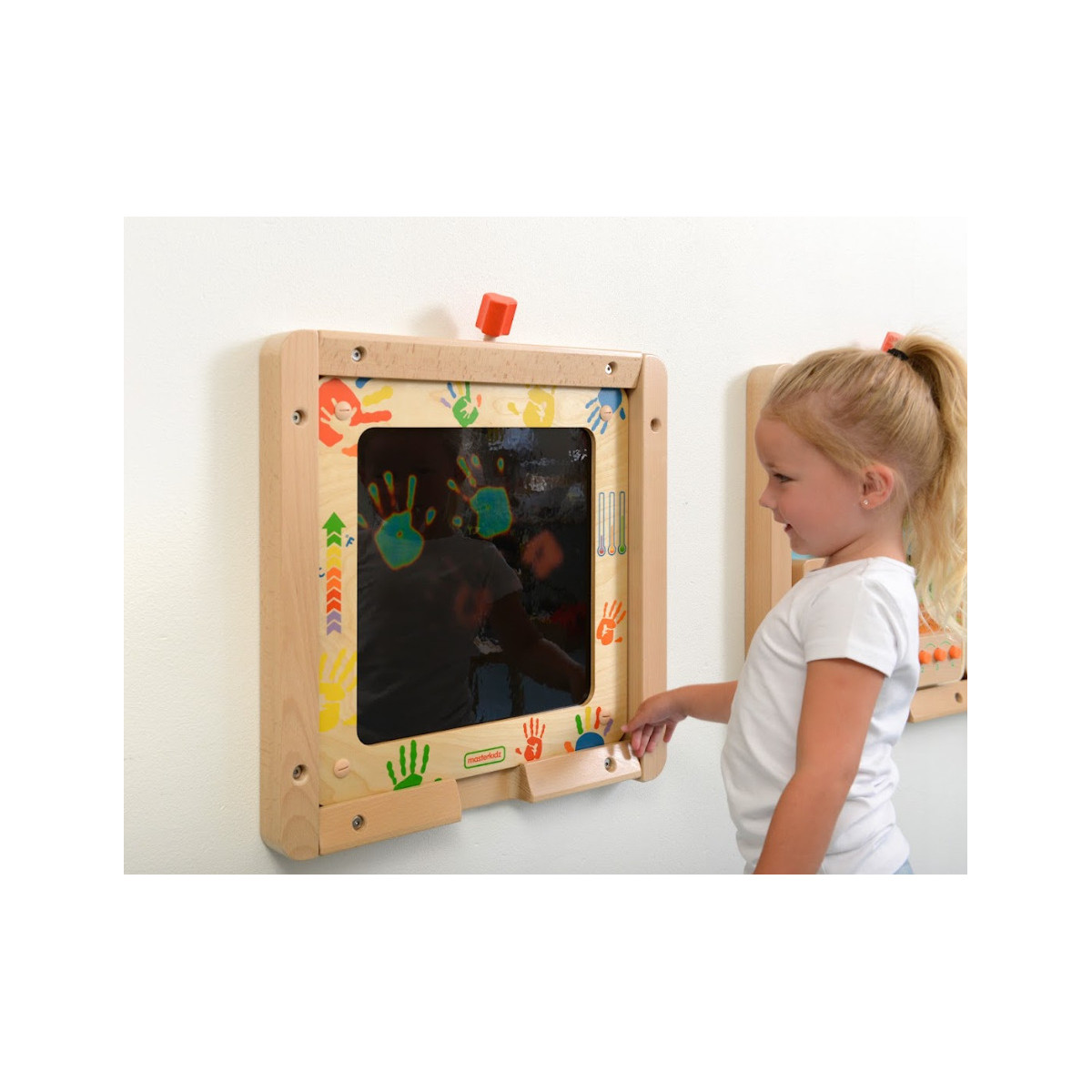 Les enfants découvrent la relation de cause à effet et développent leur sensibilité. Idéal pour expérimenter : posez vos mains sur le plateau, retirez-les, comparez, quelle impression est la plus colorée ? Une expérience sensorielle passionnante qui éveille la curiosité, aiguise le sens de l’observation et invite à l’émerveillement partagé.