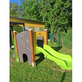 La,structure de jeu extérieure Éléphant crèche et maternelle promet des heures de jeu, d'apprentissage et de découverte aux enfants de 1 à 6 ans. Avec ses dimensions généreuses (3,6 m de long, 1,5 m de large et 1,8 m de haut), cette structure de jeu robuste offre un environnement sûr et stimulant...